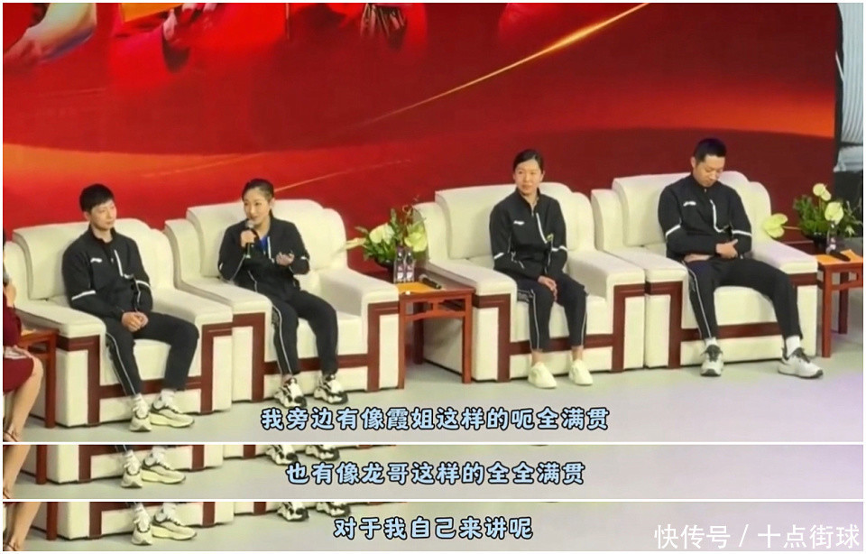 在“奥运冠军共享与互动”递次,刘诗雯以自己资历勉励学子时,极度奖饰了马龙和李晓霞的“全满贯”设立,却一时果决未说起身旁的许昕,主抓东说念宗旨状赶紧请示:“诗雯,你漏了许昕!”